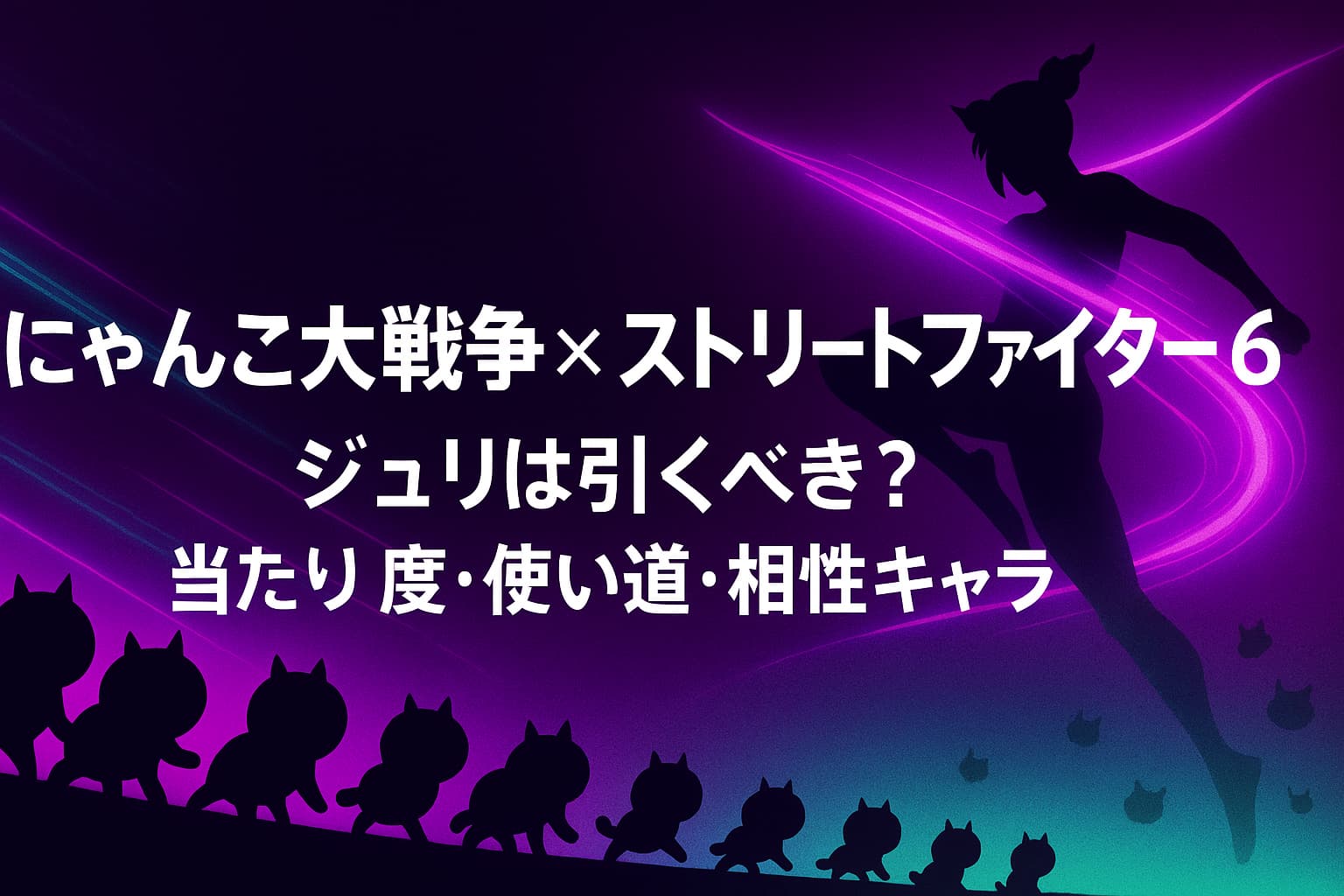 ふっと口角を上げて、相手の焦りを愉しむように——ストリートファイター6の「ジュリ」が、スマホの小さな戦場に降り立った。にゃんこ大戦争×ストリートファイター6の最新コラボは、ガチャがBLUE/REDの二分制、ゲリラ出現の「New Challenger」、最高難度「VERY HARD」まで一気呵成に畳みかけてくる。この記事では、開催情報の要点から、ジュリの評価・使い道・相性キャラ・編成までを一気に整頓。あなたの石と時間が、“悔い”ではなく“勝ち筋”に変わるよう、丁寧に導く。