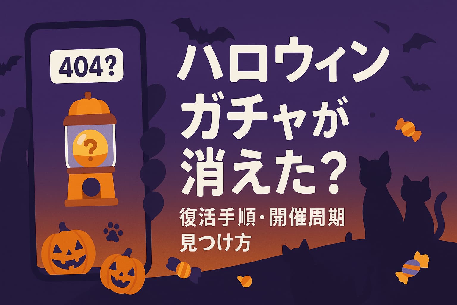季節がひとつ回るたび、にゃんこ大戦争のホーム画面は少しだけ衣替えします。たとえばハロウィン。いつも通り起動したはずなのに、「ハロウィンガチャが消えた?」と胸がざわつく朝があります。私は攻略班でも開発者でもありません。だからこそ、わからないことは「わからない」と言い切り、それでも前へ進むための小さな手順を並べます。開催周期は年ごとに揺れますし、表示の入口名も微妙に変わります。ここでは、私の端末での体感、過去の記憶、そして“こう動いていそうだ”という私なりの予想を交えて、迷子にならないための道しるべを置きます。